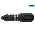 TALAtools 42 Piece Impact Screwdriver Bit Set with a selection of bits made from S2 tool steel with black oxide coating that resists corrosion and provides extra durability for longer life. They have a super-strong construction that absorbs impact and withstands the high levels of torque. Supplied in a durable case. Contains: 29 x 25mm Impact Bits7 x 50mm Impact Bits5 x 89mm Impact Bits1 x 54mm Magnetic Impact Bit Holder with 2 rings..