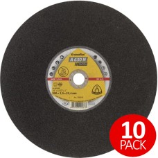 A 630 N SupraKronenflex® large cutting-off wheels for SteelAdvantages: Aggressive performance with an outstanding service life - An exceptional choice for the cutting of solid material - Bond optimised for universal use - Low thermal load - Minimal burr formationDisc SpecificationDiameter: 356mmThickness: 2.5mmBore / mm: 25.4Vmax m/s: 80Max RPM: 4,400Structural Shape: Flat..