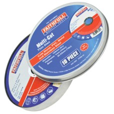 The Faithfull Multi-Cut Cutting Discs will cut a wide range of materials used in the construction and fabrication industries. At only 1mm thick they are able to provide a fast cutting action with less waste and dust. Multi-Cut discs solve the problem of cutting several different materials at once and are ideal for cutting modern day composite materials used throughout industry. Will cut sheet metal, stainless steel (inox), pipes and profiles, brick, stone, ceramic tiles and other building materi..