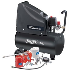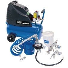 FEATURES:This multi-purpose kit is suitable for the hobbyist or semi-professional user. The oil free compressor unit is both powerful and portable, with pressure switch, pressure regulator and pressure gauge. The motor emits no fumes and it has a long maintenance free life. The air tool kit includes fittings for spraying, inflating and cleaning.CONTENTS:1 x Oil Free Compressor 24 Litre (24978)1 x 5pc Air Tool Kit (81508)1 x Adaptor Euro-XF 1/4" Male Nut (54415)..