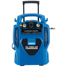 • Telescopic handles and wheels• Emits no fumes• Long maintenance free life• Pressure switch, pressure regulator and pressure gauge• Fitted with a pressure switch, tank pressure gauge, air outlet gauge and quick euro coupling• Supplied complete with a 1.7m approved cable..