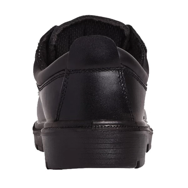 Black action leather water resistant safety shoe. Padded collar and tongue for added comfort. Steel toe cap and steel midsole protection. Dual density polyurethane outsole. Anti-static. A traditional lightweight safety shoe for most industries.