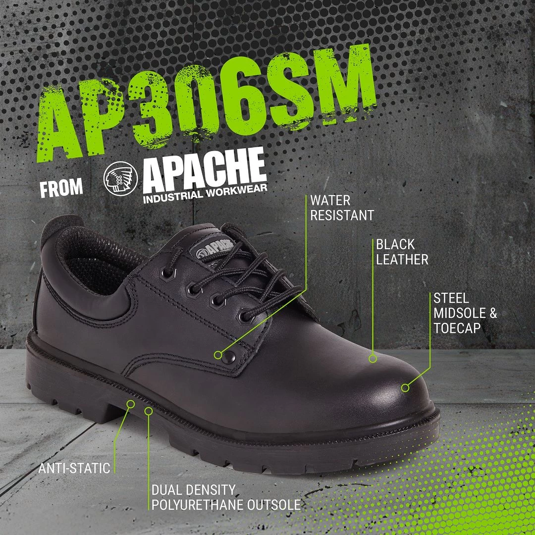 Apache AP306 Black Leather Water Resistant Safety Shoe has been added to your cart