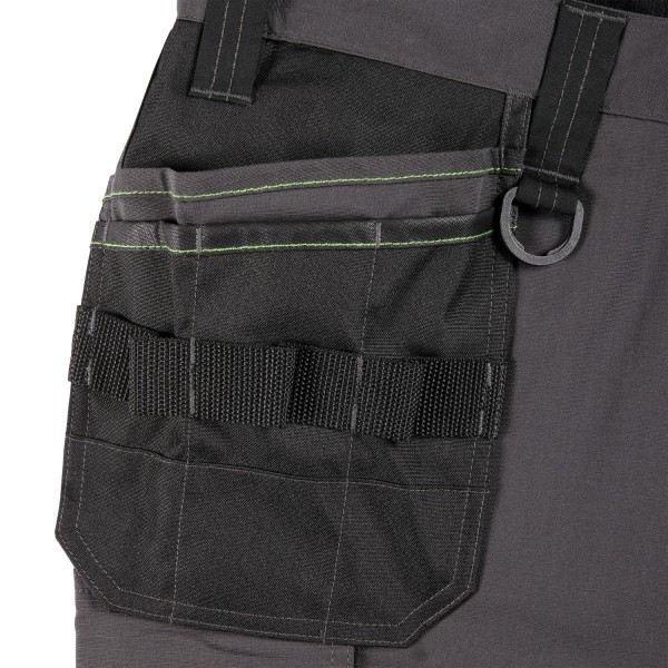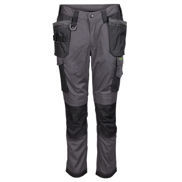 Your perfect work-comfort balance can be found in the SUDBURY work trouser. Our new lightweight, slim fit, stretch trouser is manufactured to make your working day more comfortable. The stretch rip-stop fabric, stretch yoke and gusset paired up with the elasticated waistband ensures the trouser allows freedom of movement whilst on site. Cordura features on the holster pockets, knee pads and hems giving the extra durability. Two side cargo pockets, one featuring a mobile phone pocket, and two inset rear pockets which eliminates the extra bellowing material on the back of the trouser.