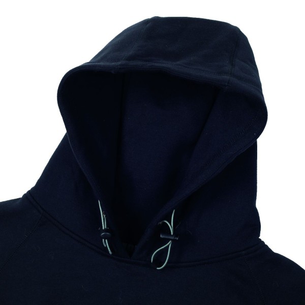 Brushed back fleece sweatshirt with toggle adjustable double hood. Tunnel front pocket. Durable cotton covered elbow patches. 5 thread stitch detail for durability. A quality hooded sweatshirt for all trades.