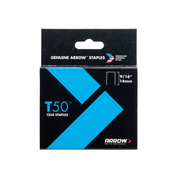 The Arrow ARRT50916S T50 Staples Box contains top quality 0.050 wire staples for use with T50 and T55 tackers: