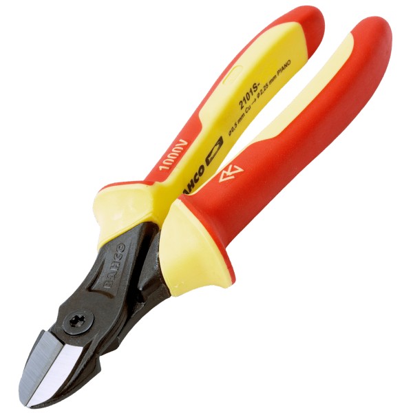 Bahco Insulated side cutting pliers have progressive edges, the cutting radius progresses along the edge in order to cut hard material like piano wire close to the joint and soft materials like copper and plastic insulated wire at the tip.