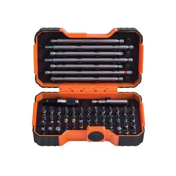The Bahco 59/S54BC Colour-Coded Bit Set contains a wide selection of bits suitable for universal use. Each bit is made from high-performance alloy steel. Supplied in a durable carry case.