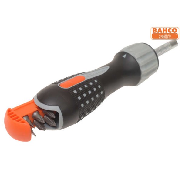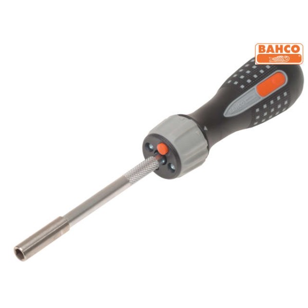 The Bahco 808050L LED Ratchet Screwdriver is a 1/4in drive ratcheting bit holder screwdriver with a magnetic bit holder, and has a three-component handle with textured finish for maximum torque and minimum effort.