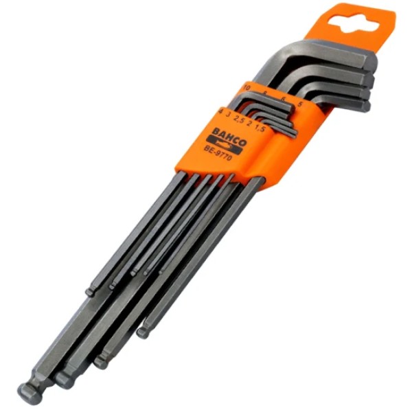 The Bahco 9-piece Hexagon Key set consists of the following sizes of offset metric keys;
