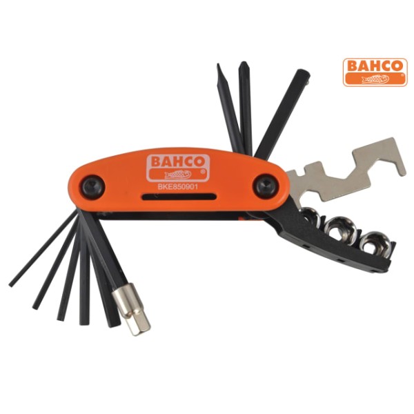 The Bahco BKE850901 Multi Bike Pocket Tool features 17 different tools and it is supplied with a canvas pouch that can be attached to a belt.