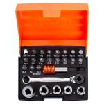 The Bahco 59/S10BC Bit Set contains a selection of bits made from S2 high alloy steel. The TORX bits are coloured to easily identify the size of the tip. Contains:5 x 25mm TORX Bits: TX10, TX15, TX20, TX25 and TX30.1 x 25mm Grabber Phillips Bit: PH2G.2 x 25mm Pozidriv Bits: PZ1 and PZ2...
