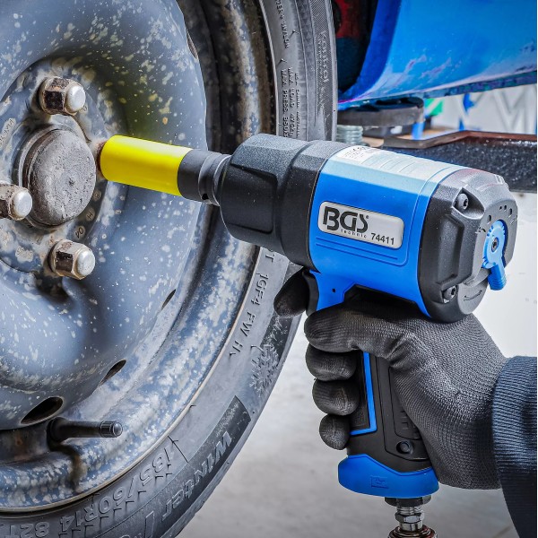 The BGS Technic Air Impact Wrench delivers impressive power with a maximum torque of 1650 Nm, making it ideal for heavy-duty automotive and industrial applications. With a 12.5 mm (1/2") drive, it offers compatibility with a wide range of sockets. Built for durability and performance, this high-torque wrench ensures efficient fastening and loosening, making it a reliable tool for professionals.