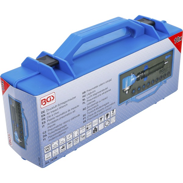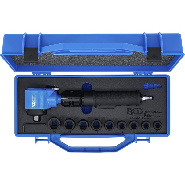 BGS Technic Air Impact Wrench | angled and Impact Socket Set | 12.5 mm (1/2") | 650 Nm | 10 pcs. has been added to your cart