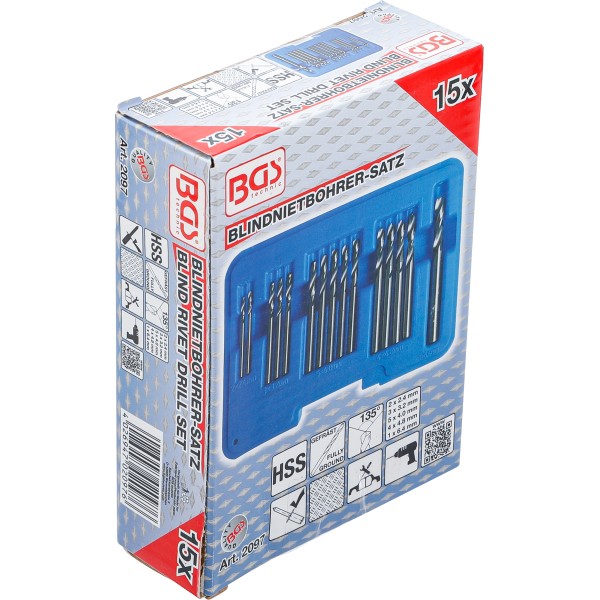 BGS Technic Blind Rivet Drill Set | HSS | 2.4 - 6.4 mm | 15 pcs. has been added to your cart