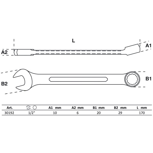 | Wrench size 1 | 1/2 " |