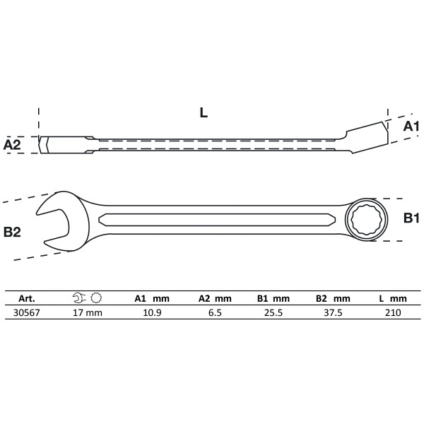 | Wrench size 1 | 17 mm |