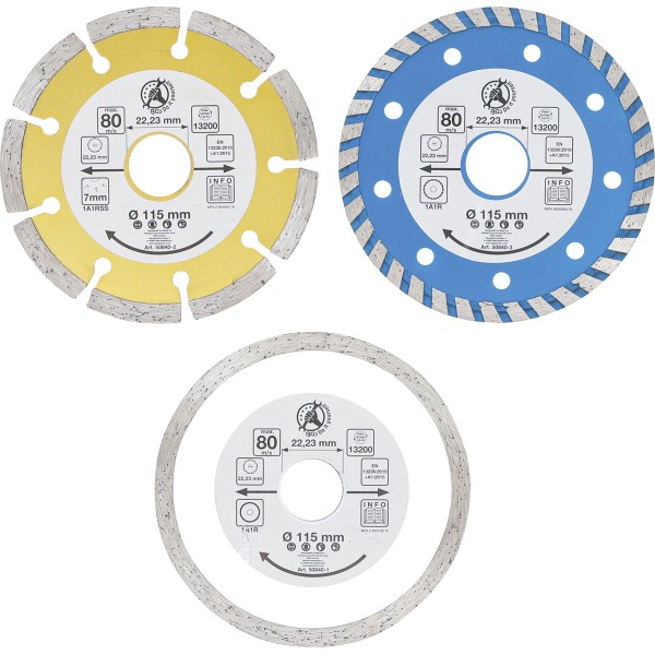 BGS Technic Diamond Disc Set | Drill Hole Ø 20 mm | Ø 115 mm | 3 pcs. has been added to your cart