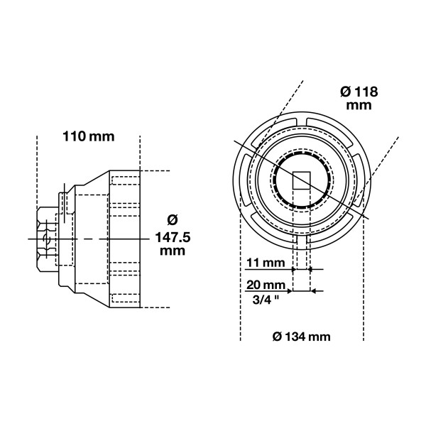 BGS Technic Groove Nut Socket | inside taps | for MAN | 133 - 145 mm has been added to your cart