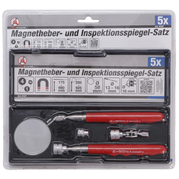 BGS Technic Magnetic Pick-Up Tool / Inspection Mirror Set | 4 pcs. has been added to your cart