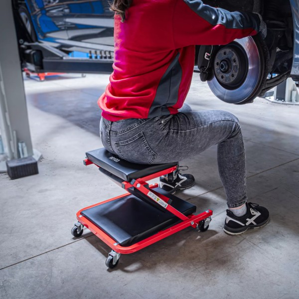 flexible use, due to 6 360° swiveling plastic casters (oil resistant and low noise)