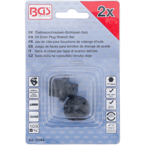 BGS Technic Oil Drain Plug Wrench Set | for DAF, MAN, Volvo, Scania, Neoplan | 2 pcs. has been added to your cart