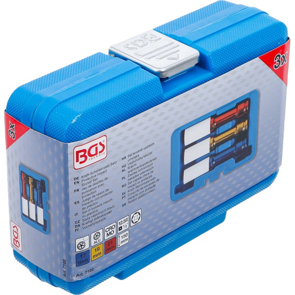 BGS Technic Protective Impact Socket Set | 12.5 mm (1/2") Drive | 150 mm deep | 17 / 19 / 21 mm | 3 pcs. has been added to your cart