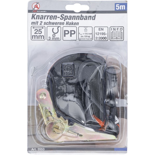 BGS Technic Ratchet Tie Down Strap | with 2 solid Hooks | 5 m x 24 mm has been added to your cart