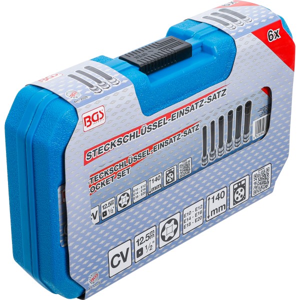 BGS Technic Socket Set, E-Type, extra long | 12.5 mm (1/2") Drive | E10 - E20 | 6 pcs. has been added to your cart
