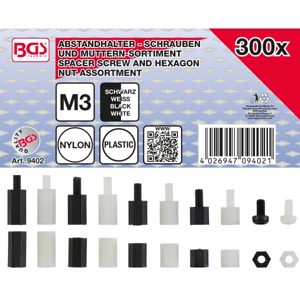BGS Technic Spacer Screw and Hexagon Nut Assortment | Nylon | 300 pcs. has been added to your cart