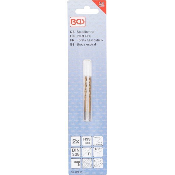 BGS Technic Twist Drill | HSS-G | titanium-nitrated | 2.5 mm | 2 pcs. has been added to your cart