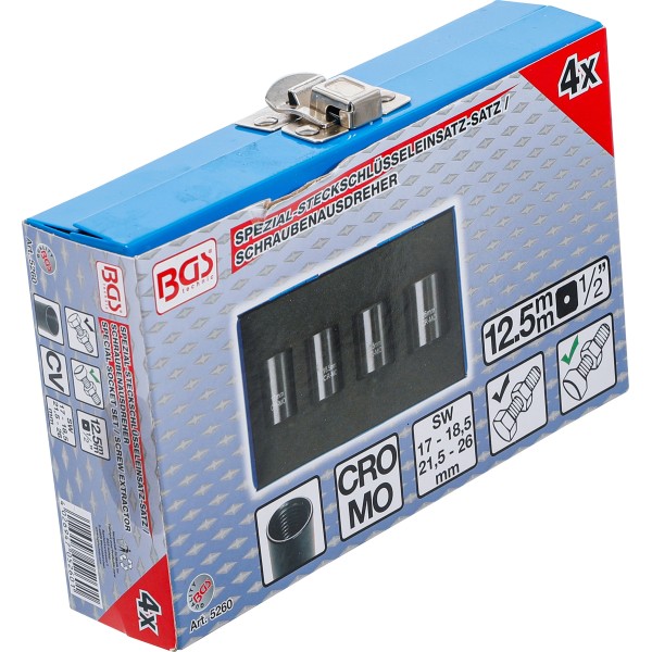 BGS Technic Twist Socket Set (Spiral Profile) / Screw Extractor | 12.5 mm (1/2") Drive | 17 - 26 mm | 4 pcs. has been added to your cart