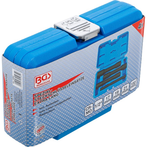 BGS Technic Twist Socket Set (Spiral Profile) / Screw Extractor, deep | 12.5 mm (1/2") Drive | 17 - 21 mm | 4 pcs. has been added to your cart