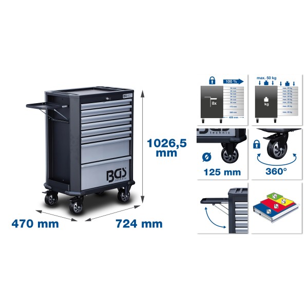 BGS Technic Workshop Trolley | 8 Drawers | with 296 Tools has been added to your cart