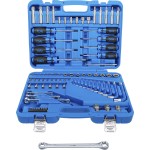 Compact and combined set composition for loosening wheel bolts and nutsprotective impact sockets for both manual and impact wrenchescan be fixed on impact wrench by pin and O-ringplastic cover and plastic sleeve for protection of aluminium rimscolored coded help to indicate the right sizetwist sockets with piral profile for manual operationfor loosening and unscrewing bolts and damaged bolt headsleft-handed cutting thread with internal conical shapewith phosphated surfacesafe and tidy storage in..