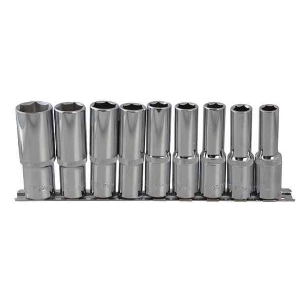 This Blue Spot socket set contains 9 useful 1/2 inch square drive sockets which are made from chrome vanadium steel for strength and durability and which have a deep reach for better access.