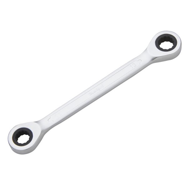 The BlueSpot Double End Ratchet Spanner is manufactured from chrome vanadium steel. Heat-treated and nickel-plated for increased durability. Fully polished mirror finish. The 5° ratcheting increment makes it ideal for use in tight spaces. 72 teeth.