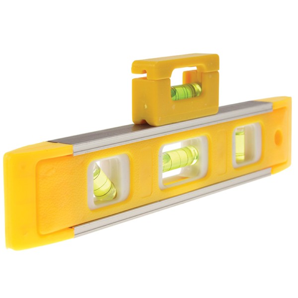 BlueSpot Magnetic Torpedo Level with a sturdy plastic body and aluminium frame for increased durability. Ideal for small building projects. Magnetic base allows for hands-free operation. Features three spirit level vials set at horizontal, vertical and 45° angles.