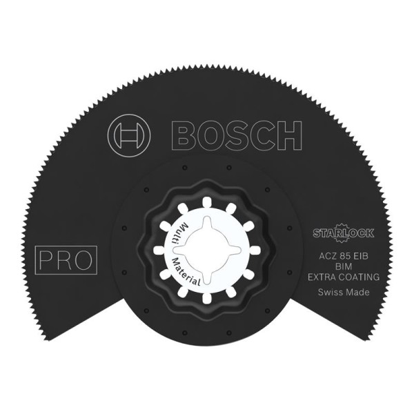 The Bosch PRO ACZ 85 EIB Segment Blade is a great all-round blade for all kinds of interior building and renovation work. The PRO ACZ 85 EIB Segment Blade is comfortable making wide and straight cuts in all kinds of abrasive wood products as well as plaster, fibre boards, and non-hardenend metals. Made from Bi-Metal for strength and endurance. Plus, its teeth are coated for extra durability. The blade has a small tooth geometry, providing trouble-free cutting in non-hardened metals.