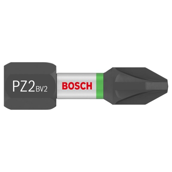 The Bosch PRO Impact Screwdriver Pozi Bits are a great choice for installers looking for robust, heavy-duty screwdriver bits. They are up to 50x more robust than Bosch Extra Hard Bits. The bits are made from heat-treated modified steel for outstanding strength and resistance to high torque. Their torsion zone absorbs the torque stress at the bits’ tip to make sure they won’t break. They have colour-coded rings indicating the head type and laser markings helping you pick out the size you need.