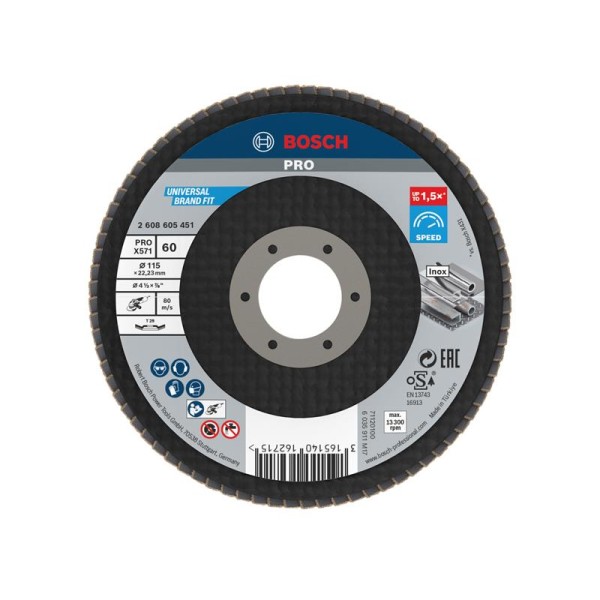 1 x Bosch PRO X571 Flap Disc, Angled 115 x 22.23 x G60