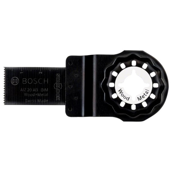 The Bosch Starlock IZ 20 AB Wood & Metal Blade for fine cuts in wood and non-hardened metal. Its narrow 20mm cutting blade width allows for filigree work. The sturdy mounting system reduces wobbling and enables hairline cuts.