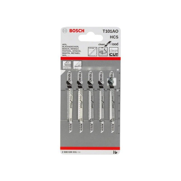 Bosch Powertool Accessories T 101 AO Clean for Wood Jigsaw Blade 83mm Pack of 5 has been added to your cart