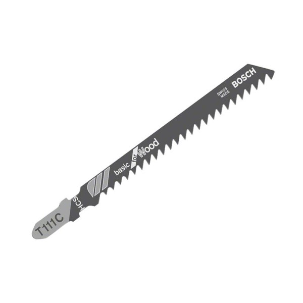 The Bosch T 111 C Basic for Wood Jigsaw Blade delivers straight cuts in wood. Its milled, side-set teeth are ideal for cuts without special requirements. Medium tooth pitch (3mm) for cutting woodworking materials with 4-50 mm thickness. Made from a high carbon steel material for cutting softwood and non-abrasive woodworking materials. Fits all T-shank jigsaws.