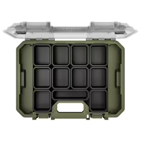 The BUNKER Load-Up Stacking Storage System offers the ultimate solution for organising, transporting, and securing your tools. Its modular design enables you to combine tool boxes, organisers and crates to create a customised stacking system that meets your specific needs. This highly adaptable organiser is constructed from high-impact resistant polypropylene. It can be stacked with BUNKER Load-Up tool boxes using a fast and reliable interlocking mechanism. Inside, you will find 11 bins and storage space for keeping small parts and components safe and organised. The transparent lid offers easy visibility of the contents, while the integrated carry handle enhances portability. With IP65 protection against water and dust, BUNKER Load-Up effectively shields your valuable tools from the harsh elements and jobsite debris. All BUNKER® storage comes with a 12-month warranty, extended to 10 years upon registration. Maximise your mobile tool storage and be ready for any job with the robust BUNKER Load-Up Stacking System.