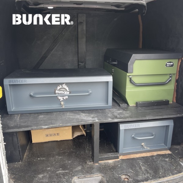 This robust BUNKER tool storage box is designed to protect your tools from theft, whether on-site or in your vehicle. Its security features provide peace of mind, allowing you to work confidently while safeguarding your livelihood. Constructed from heavy-duty steel, the BUNKER T1 is designed to fend off thieves. The internal hinge design also protects against tampering, and the steel cross bracing, along with a reinforced lid, prevents the box from being pried open. Additionally, the box can be securely attached to your vehicle's floor and it includes a tough security lock (supplied with two keys). There is also a discreet built-in holder for an AirTag, allowing you to track your box if it goes missing. For ease of transport, it features a carry handle on both sides. The BUNKER T1 has been rigorously tested and certified as Silver by Sold Secure, the UK’s leading authority on security products and Secured by Design, the official police security initiative. It comes with all the necessary fixings for installation in your vehicle. You can also complement it with additional BUNKER van storage boxes to customise your vehicle storage to your specific needs.