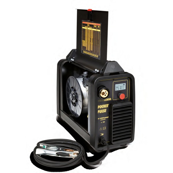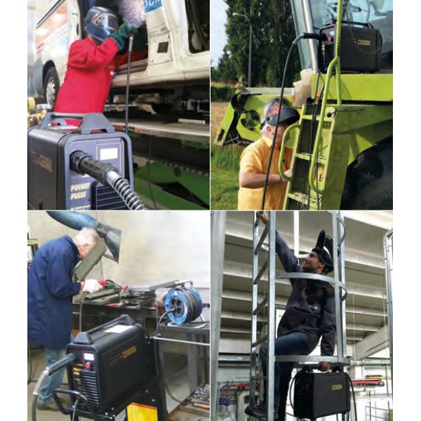 Versatility is one of the salient notes of the Pocket Pulse that, thanks to its particular characteristics of weight and size, to the rich range of functions and to its power (185A at 20% and 110A at 100%) is suitable for both the "do-it-yourself" type use (the input of 2.7 kvA at 100% makes it possible to use the machine even in a house environment) and for professional use in several sectors (body repair, metal fabrication, on site maintenance - even outdoors, using flux cored wires without shielding gas).