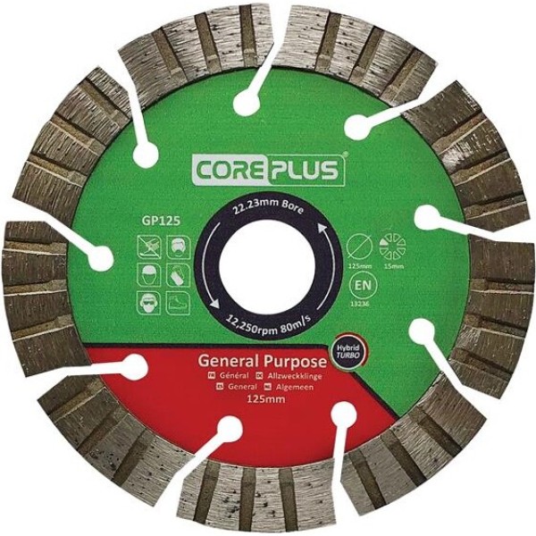 The CorePlus GP125 General-Purpose Hybrid Turbo Diamond Blade has the following specification: