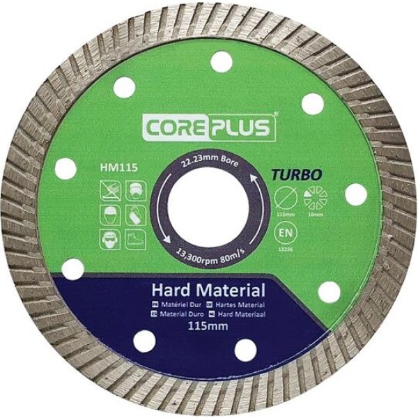 The CorePlus HM115 Hard Material Turbo Diamond Blade has the following specification: