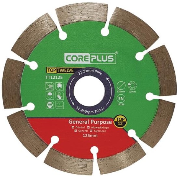 1 x CorePlus Top Twelve General Purpose Diamond Blade 125mm.